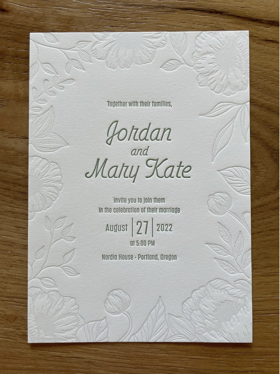 Blind deboss refers to letterpress used without ink. The effect works best when you’re adding texture or for big, bold text. A similar, but more versatile effect is to add 5-7% light grey ink. This still looks like it’s been pressed without ink, but won’t have the issue of being very hard to see in imperfect lighting.