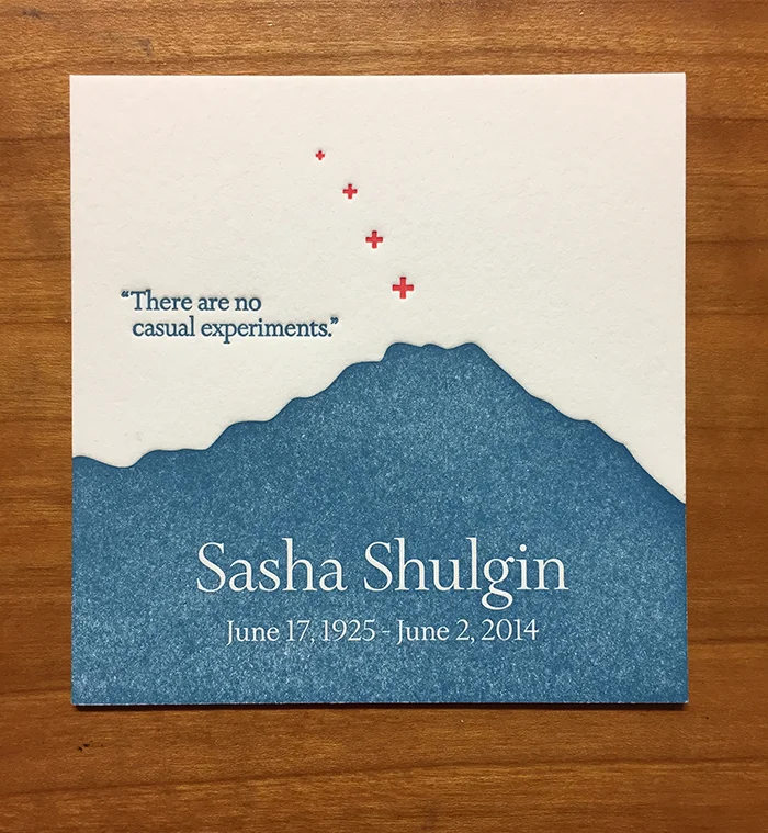 What kind of images work best with letterpress? Line drawing tend to be ideal, while art with large solids (filled in areas larger than 1/2”) tend to have a slightly textured look that’s almost heathered, called “salting,” so the ink will be less opaque. See filled in blue mountain image to the right to see what that looks like. This effect is not so noticeable with lighter colors of ink. Most people like this hand-printed look, but it’s good to know what to expect.