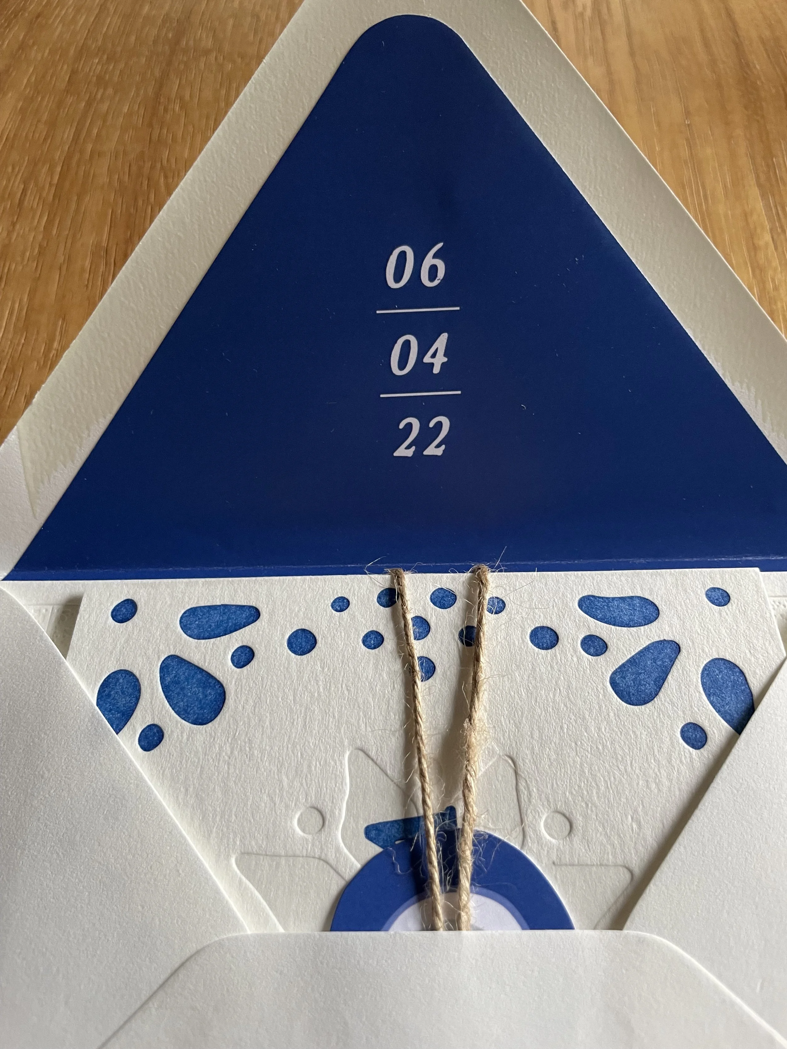Presentation pocket: die-cut wave shape. Insert items are also die-cut.